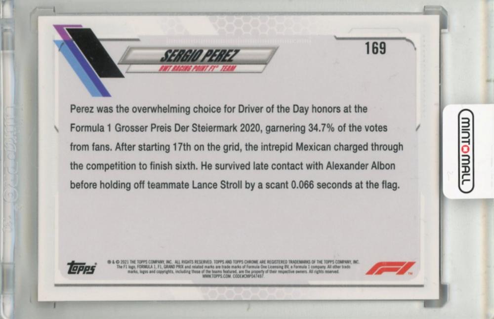 2021 TOPPS Chrome Formula 1 Sergio Perez/Driver of the Day Red Green Refractors #169 BWT Racing Point F1 Team