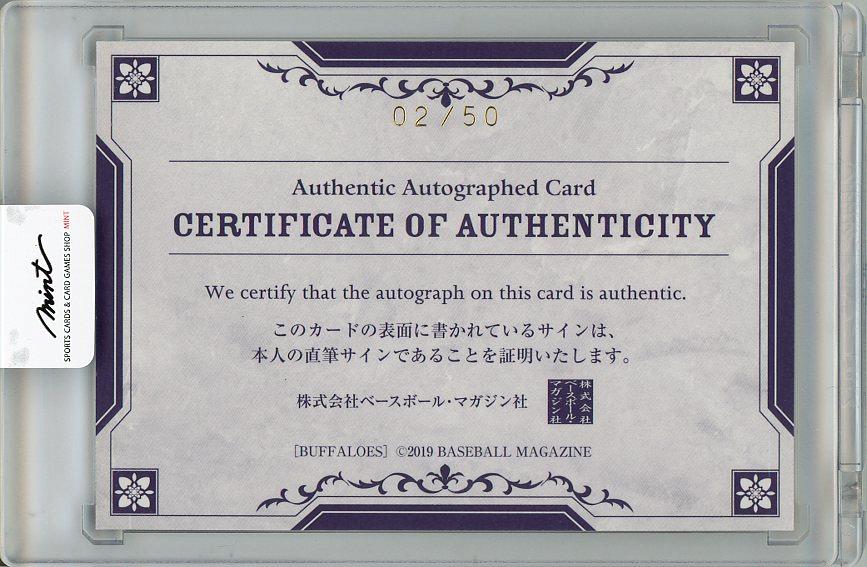 2019 BBM オリックス・バファローズ 富山凌雅 直筆サインカード (RC)【02/50】