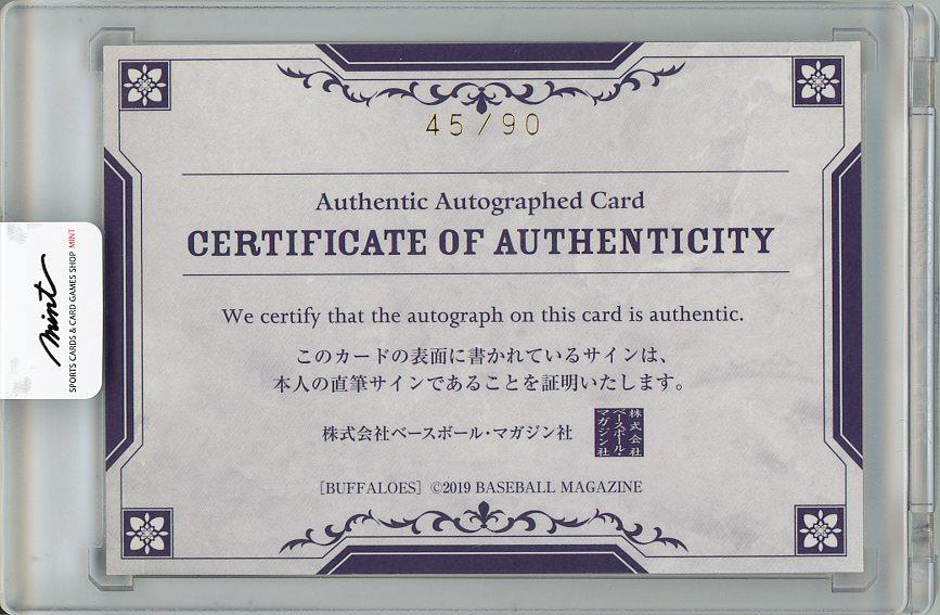 2019 BBM オリックス・バファローズ タイラー・エップラー 直筆サインカード【45/90】
