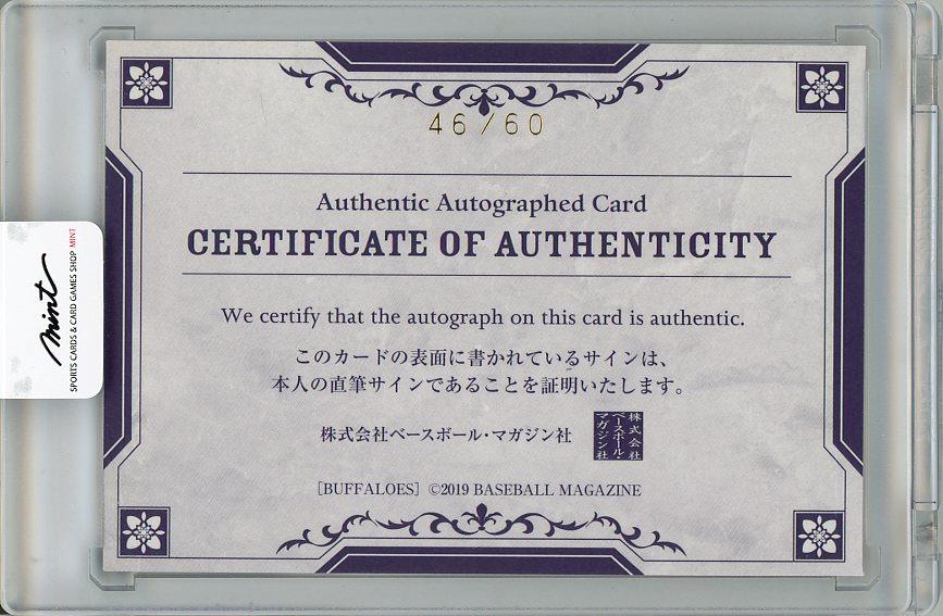 2019 BBM オリックス・バファローズ 吉田凌 直筆サインカード【46/60】
