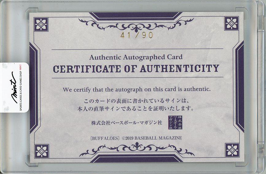 2019 BBM オリックス・バファローズ 岩本輝 直筆サインカード【41/90】
