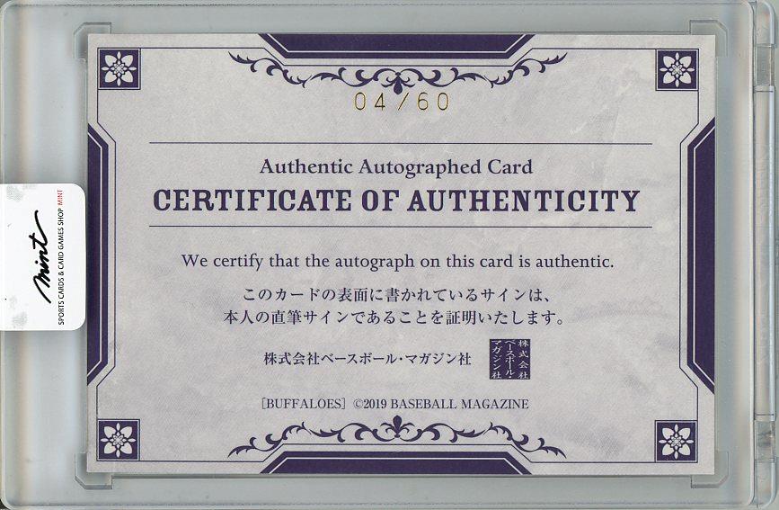 2019 BBM オリックス・バファローズ 武田健吾 直筆サインカード【04/60】
