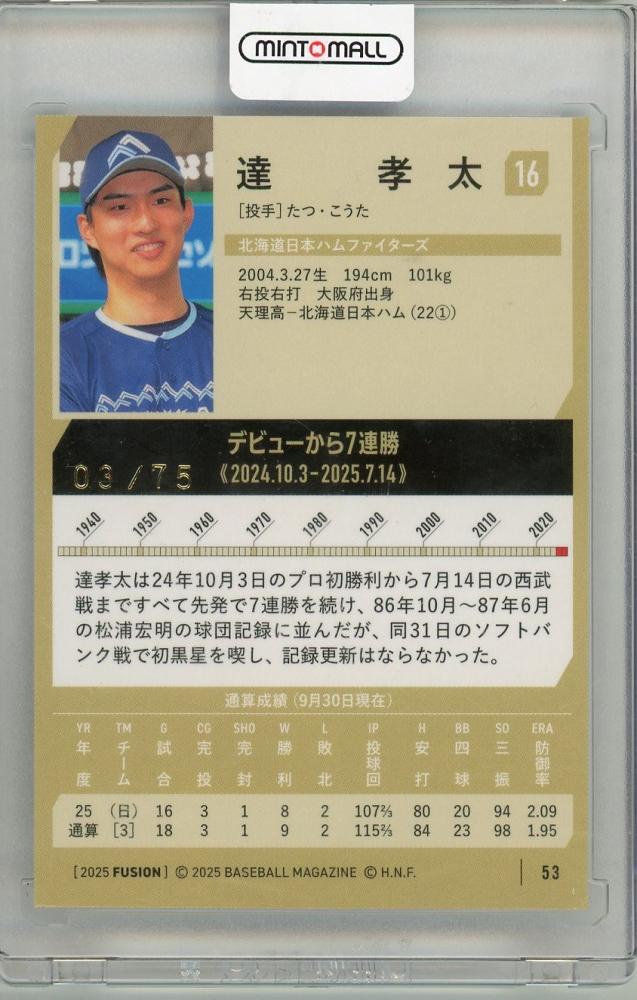 2025 BBM FUSION 達孝太 箔サイン【03/75】 北海道日本ハムファイターズ