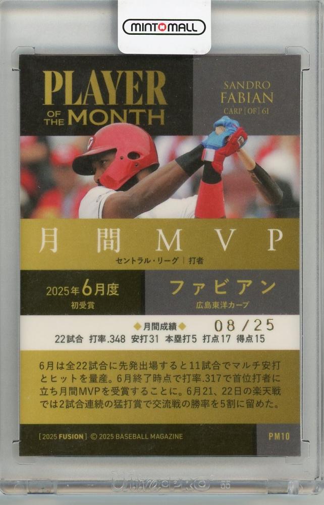 2025 BBM FUSION ファビアン 月間MVP【08/25】 広島東洋カープ