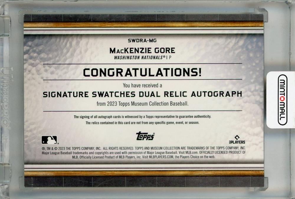 2023 TOPPS Museum Collection Mackenzie Gore Signature Swatches Dual Relic Autographs #SWDRAMG【160/299】 Washington Nationals