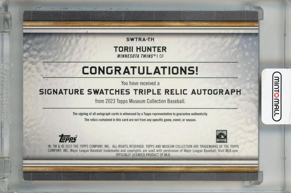 2023 Topps Museum Collection Torii Hunter Single-Player Signature Swatches Triple Relic Autographs #SWTRA-TH ※裏面白かけあり【22/25】 Minnesota Twins