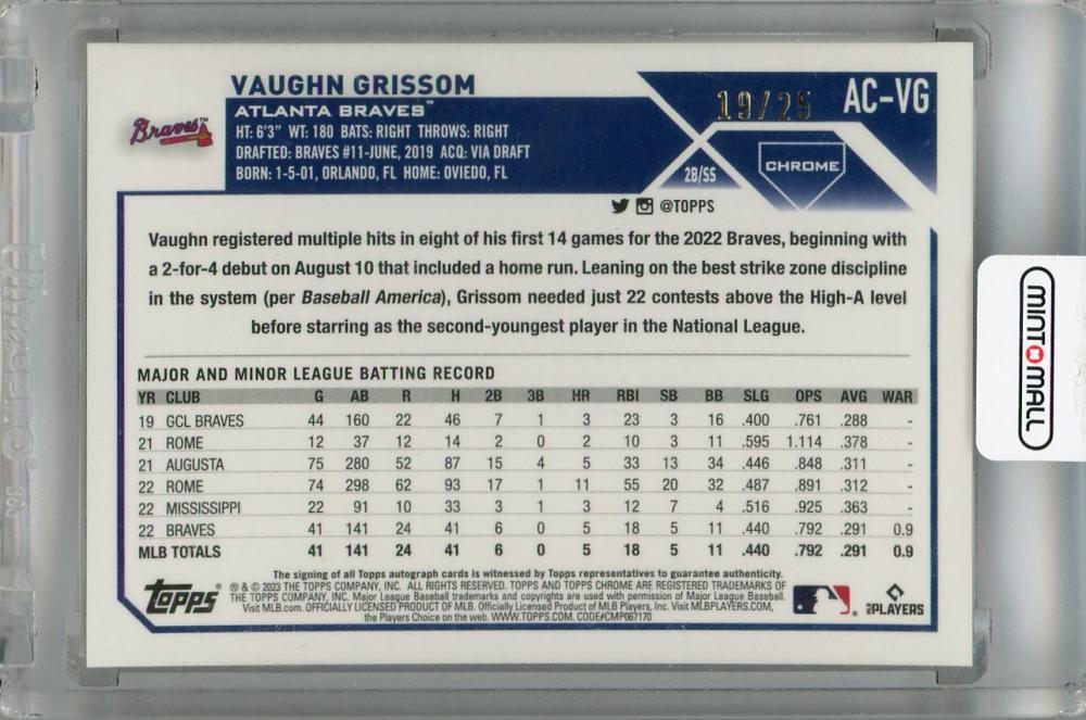 2023 Topps Chrome Update Series Vaughn Grissom Chrome Update Autographs Orange Wave #AC-VG RC【19/25】 Atlanta Braves