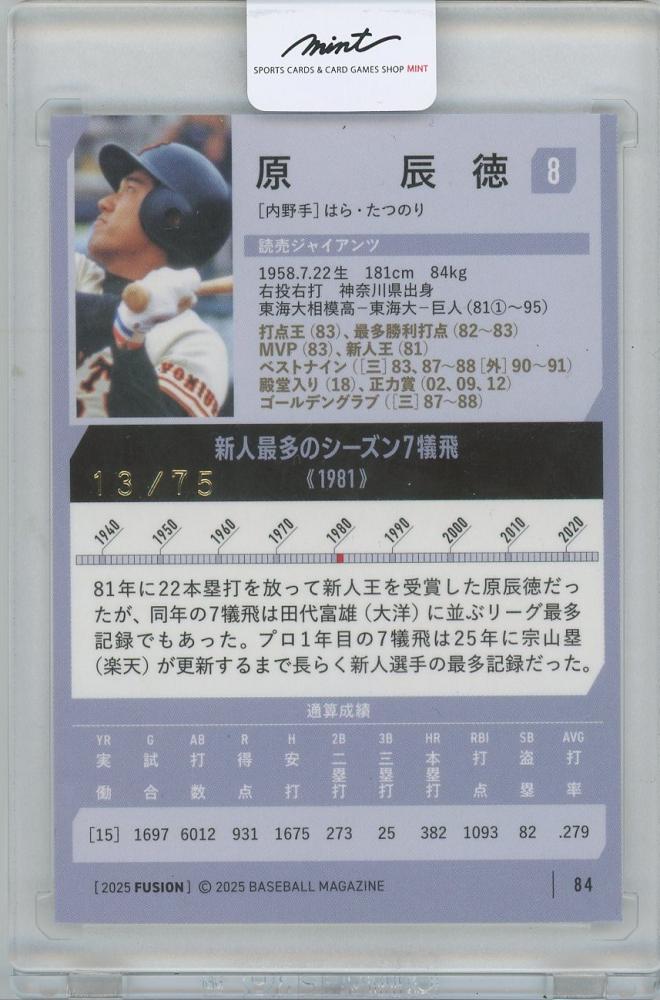 2025 BBM FUSION / 原辰徳(読売ジャイアンツ) ホロブルー箔サイン入りパラレルカード 【13/75】