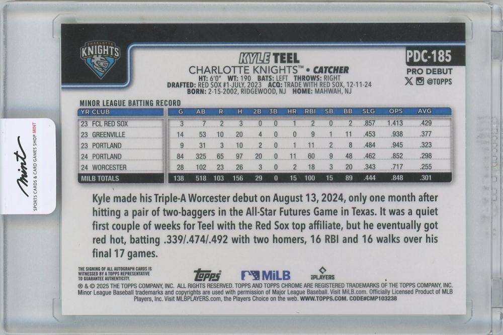 2025 TOPPS Pro Debut Chrome Autographs Green Refractors / KYLE TEEL(Charlotte Knights) 【67/99】
