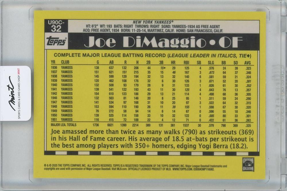2025 TOPPS Update '90 Topps Silver Pack Chrome Purple Refractors / JOE DiMAGGIO(New York Yankees) 【45/75】
