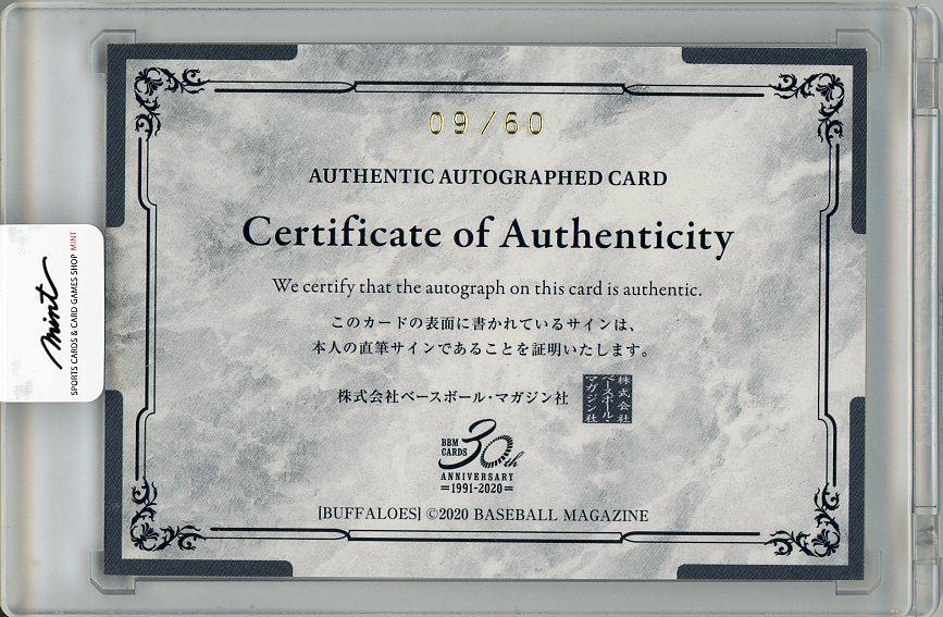 【若干スレあり】2020 BBM オリックス・バファローズ アンドリュー・アルバース 直筆サインカード【09/60】