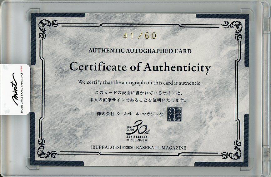 2020 BBM オリックス・バファローズ 廣澤伸哉 直筆サインカード【41/60】