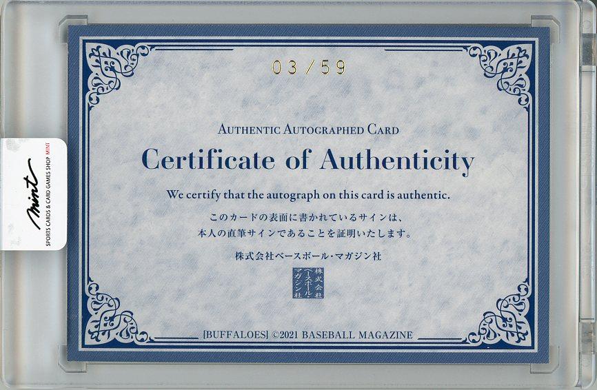 2021 BBM オリックス・バファローズ 廣澤伸哉 直筆サインカード【03/59】