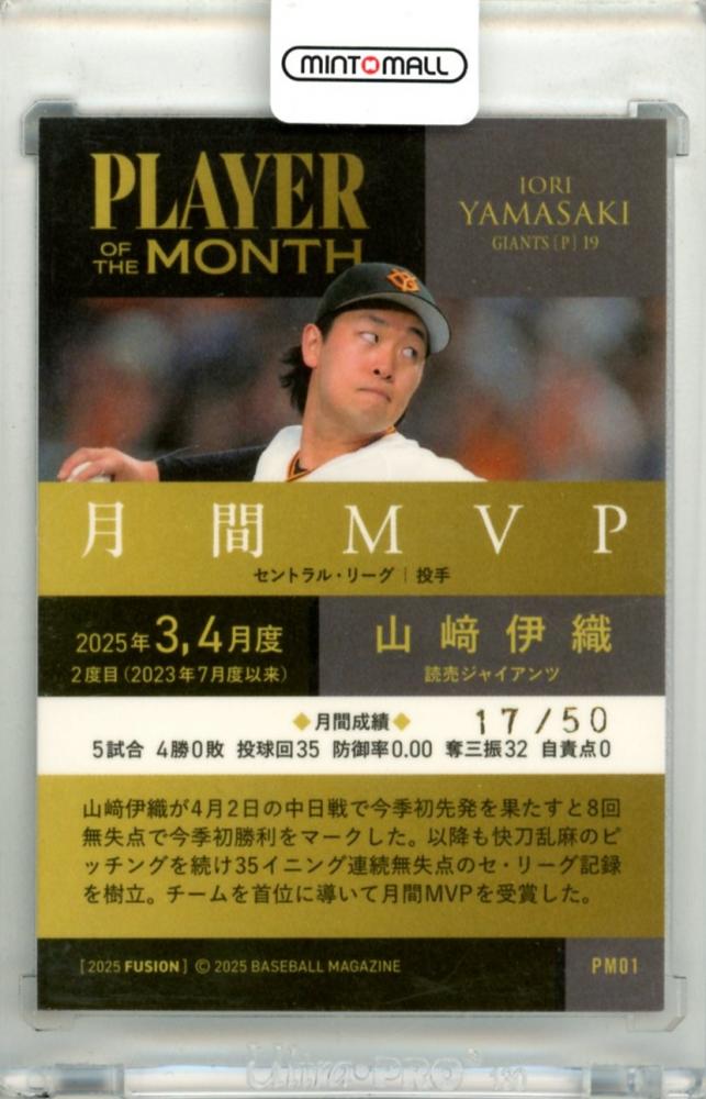 2025 BBM FUSION 山﨑伊織 #PN01 PLAYER OF THE MONTH 銀紙ホロPP版【17/50】 巨人