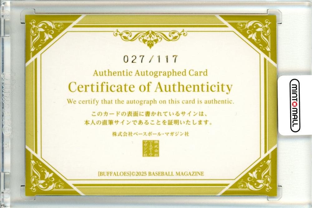 2025 BBM オリックス・バファローズ 権田琉成 直筆サインカード【027/117】