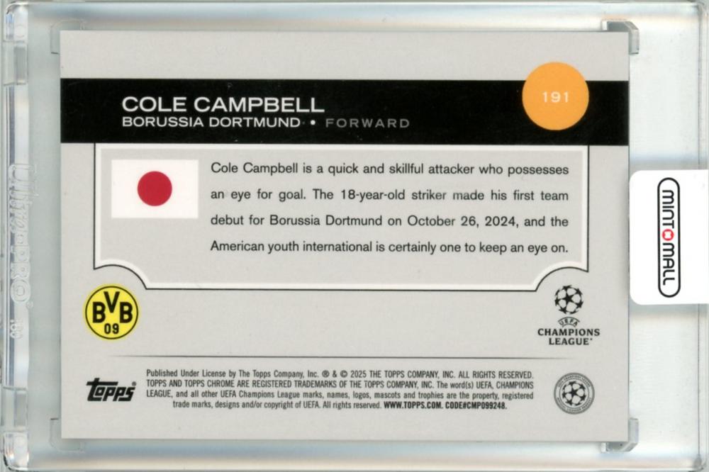2025 Topps UEFA Japan Edition Cole Campbell #191 Base Blue Mojo Refractor Parallel【04/75】 Borussia Dortmund