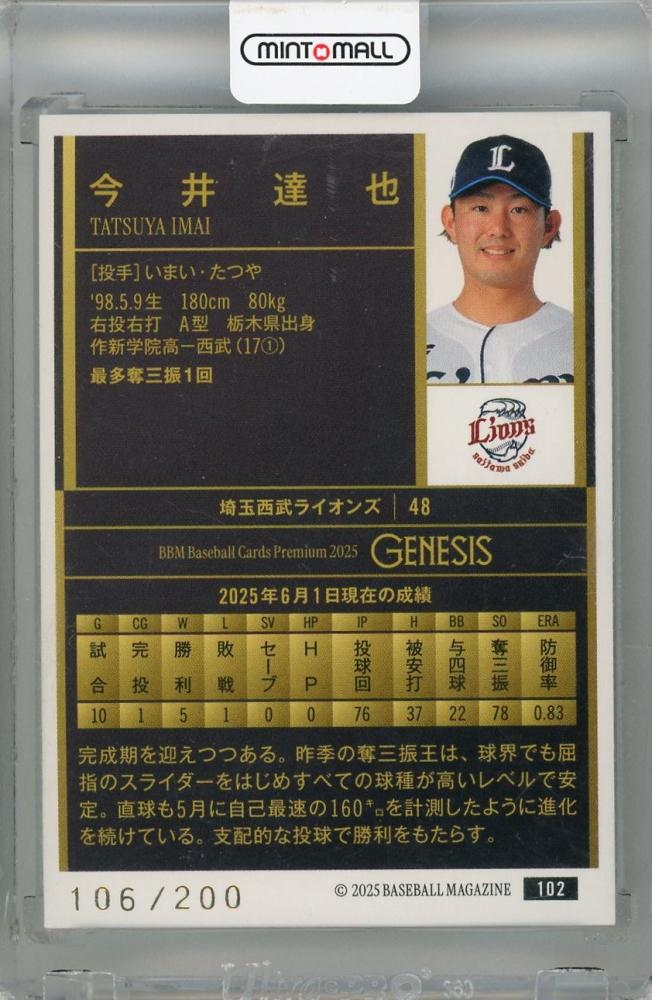 2025 BBM GENESIS 今井達也 エメラルド箔版【106/200】 埼玉西武ライオンズ