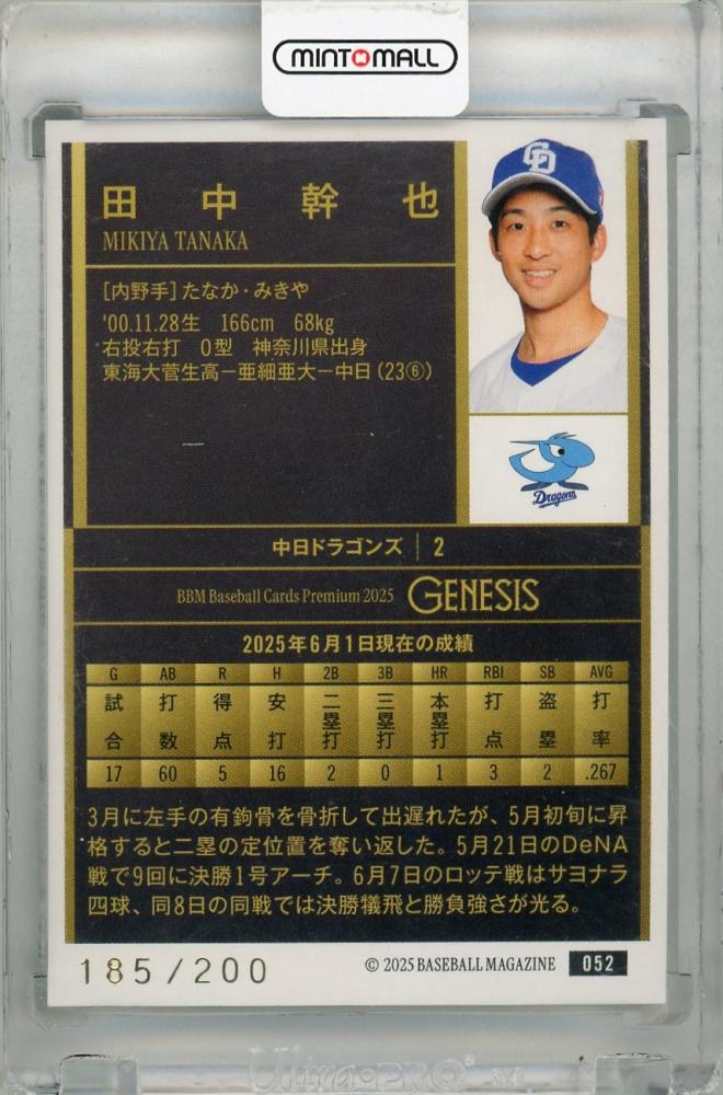 2025 BBM GENESIS 田中幹也 エメラルド箔版【185/200】 中日ドラゴンズ