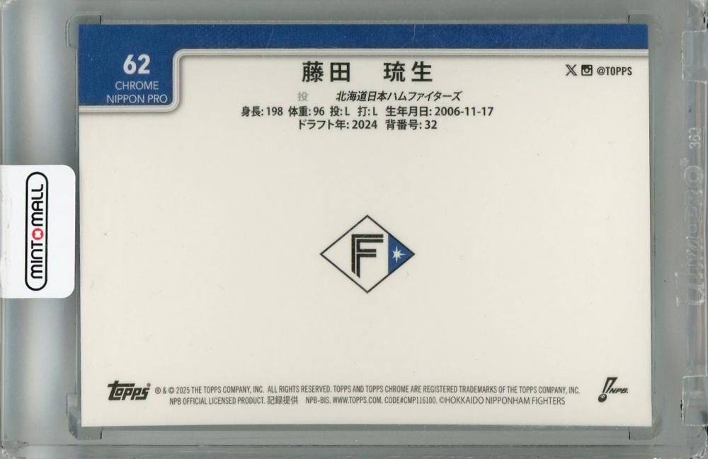 2025 Topps NPB Chrome 藤田琉生 Green #62 (RC)【45/99】 北海道日本ハムファイターズ
