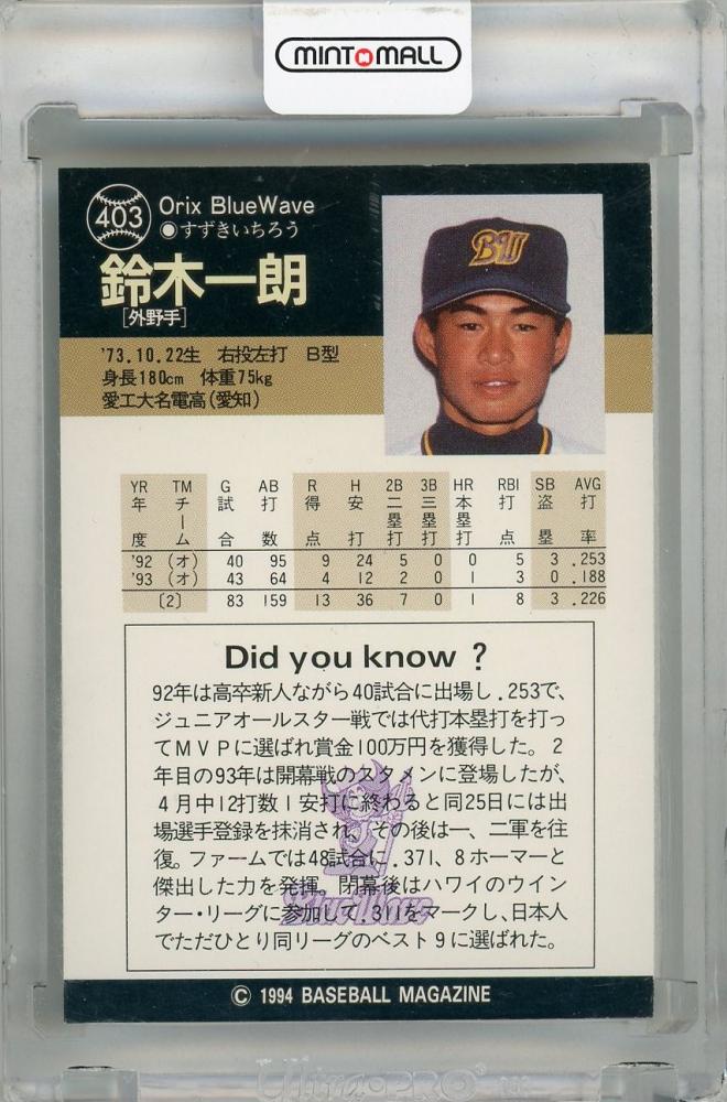 1994 BBM 鈴木一朗 レギュラーカード #403 (裏面白かけ有り) オリックス・ブルーウェーブ