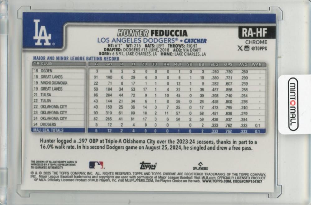 2025 TOPPS Chrome Hunter Feduccia Rookie Autographs #RAHF Los Angeles Dodgers
