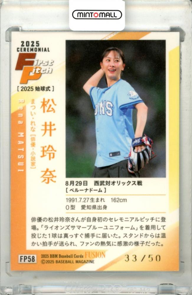 2025 BBM FUSION 松井玲奈 #FP58 始球式カード 銀紙+ホロPP版【33/50】 俳優・小説家