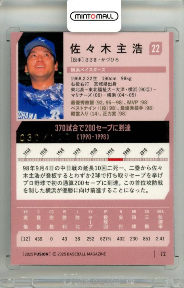 2025 BBM FUSION 佐々木主浩 #72 記録の殿堂 金箔サイン版【030/100】 横浜