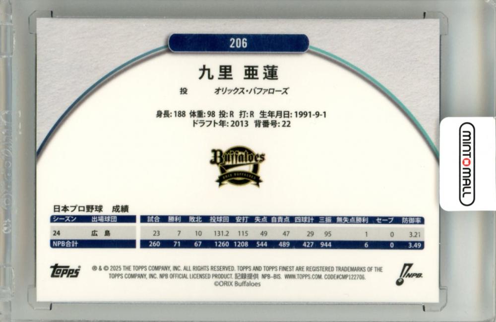 2025 TOPPS NPB FINEST 九里亜蓮 #206 Base Orange Refractor Parallel【03/25】 オリックス