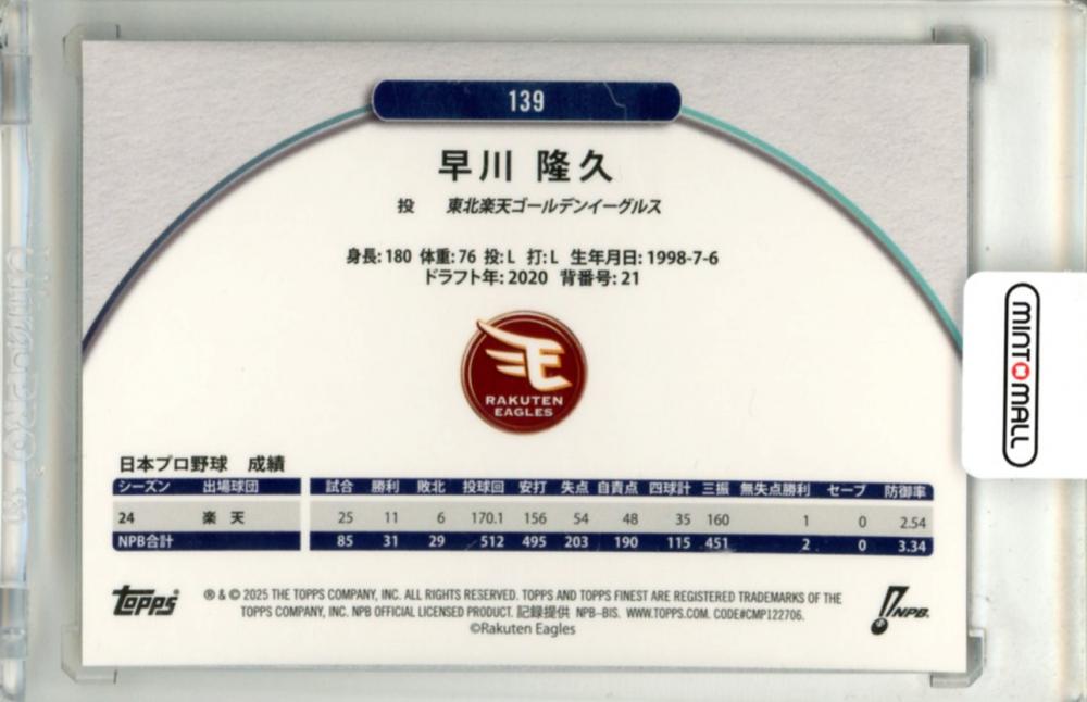 2025 TOPPS NPB FINEST 早川隆久 #139 Base Gold Refractor Parallel【31/50】 楽天