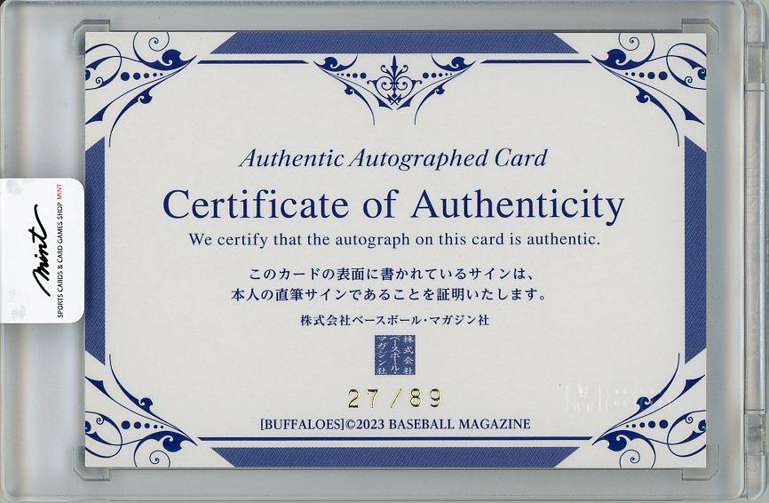 2023 BBM オリックス・バファローズ マーウィン・ゴンザレス 直筆サインカード【27/89】