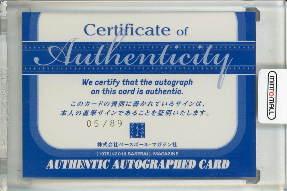 2017 BBM Time Travel 1975 藤田平 直筆サインカード【05/89】 阪神タイガース
