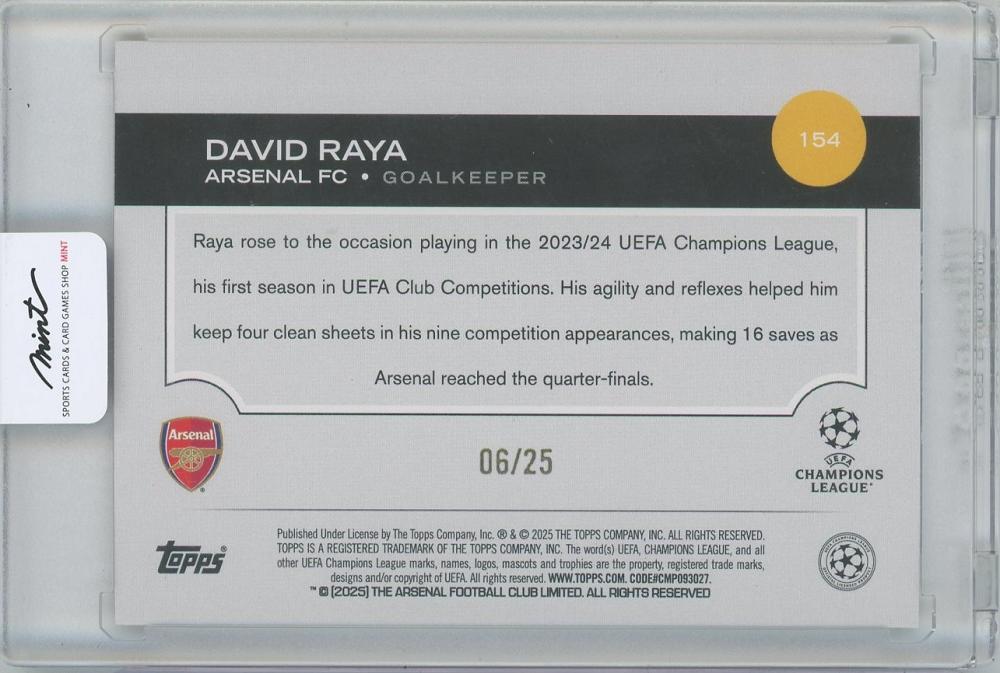 2024-25 TOPPS UEFA Club Competitions Orange Foilboard #154 / DAVID RAYA(Arsenal) 【06/25】