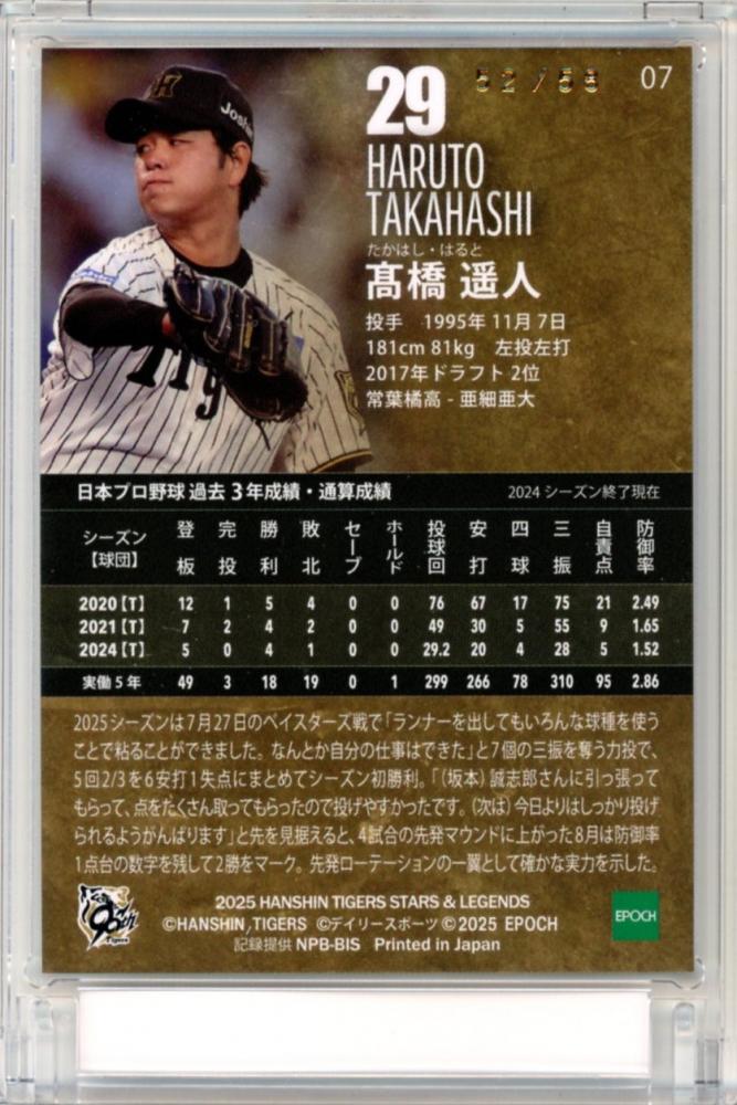 2025 EPOCH 阪神タイガース STARS&LEGENDS 髙橋遥人 #07 レギュラーカード【52/58】