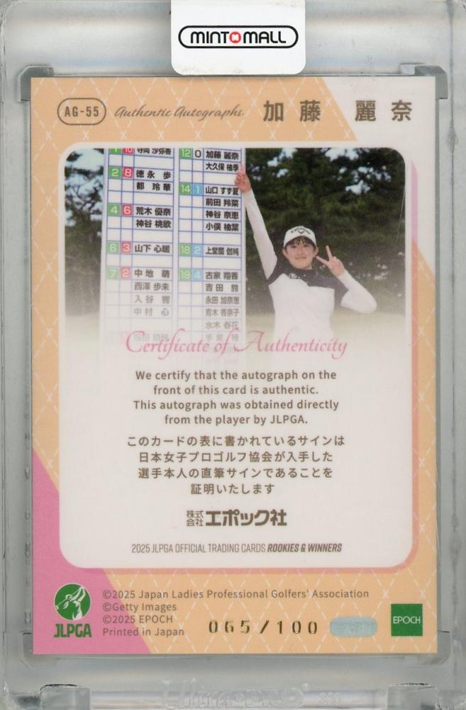 2025 EPOCH JLPGA ROOKIES & WINNERS 加藤麗奈 直筆サインカード (RC) 【065/100】