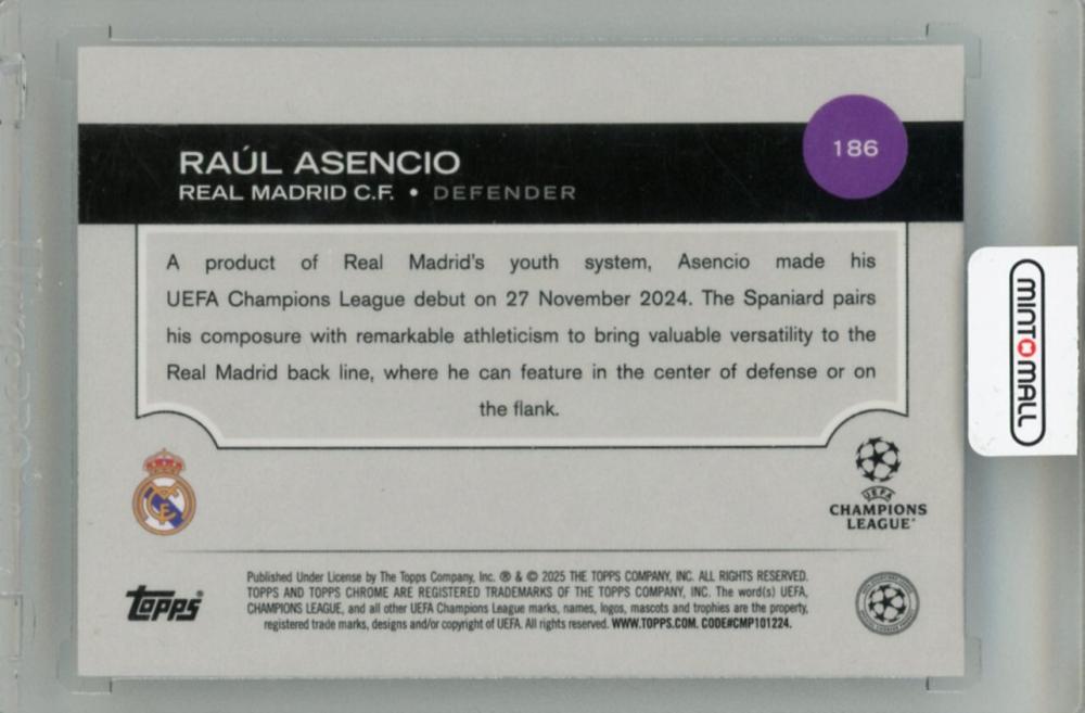 2024-25 TOPPS Chrome UEFA Club Competitions Raul Asencio Night Vision RayWave Refractors #186【010/225】 Real Madrid CF
