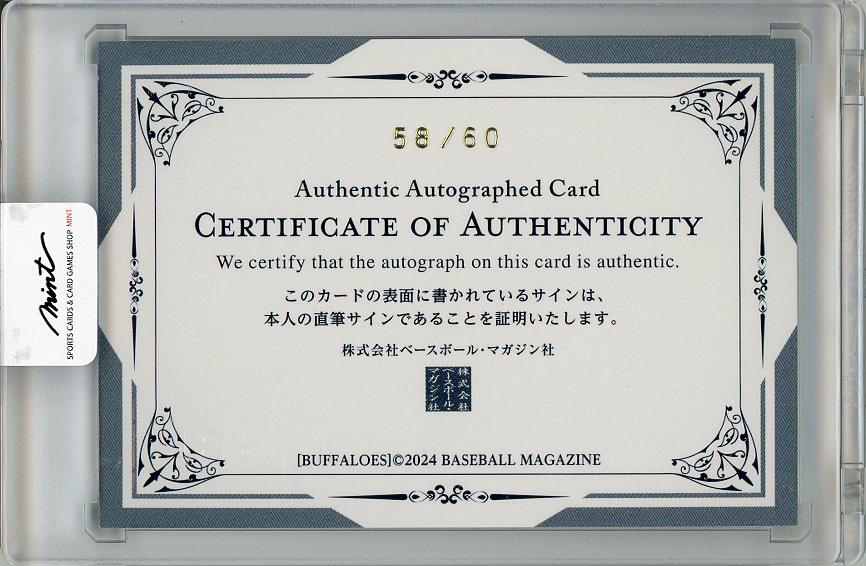 2024 BBM オリックス・バファローズ 鈴木昂平 直筆サインカード【58/60】