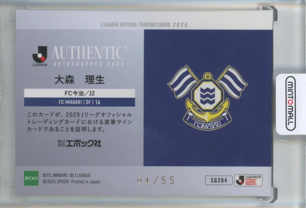 2025 EPOCH Jリーグオフィシャルトレーディングカード 大森理生 直筆サインカード【04/55】 FC今治