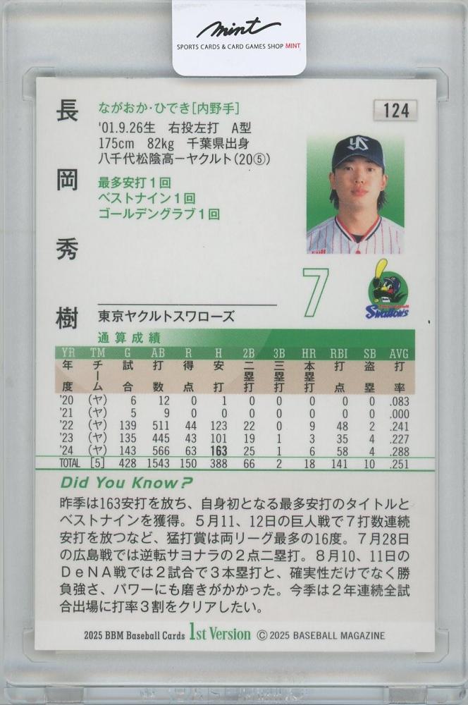 2025 BBM 1st Version #124 / 長岡秀樹(東京ヤクルトスワローズ) ウルトラシークレット版パラレルカード