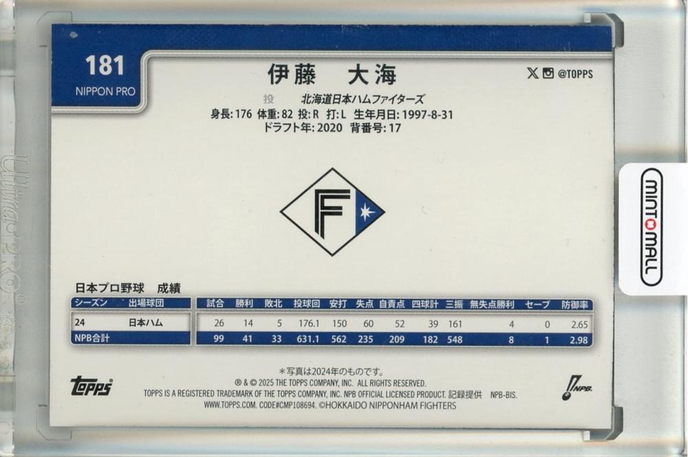 2025 Topps NPB 伊藤大海 パープル【22/75】 北海道日本ハムファイターズ