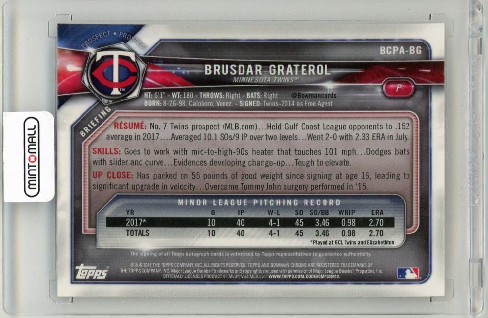 2018 Bowman Chrome Brusdar Graterol Prospect Autographs Minnesota Twins