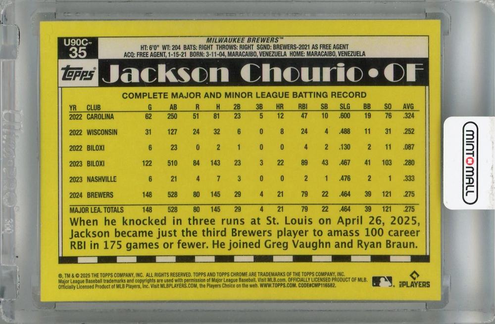 2025 Topps Update Series Jackson Chourio 1990 Topps Baseball Chrome Blue Mojo #U90C-35 ※初期傷あり【065/150】 Milwaukee Brewers