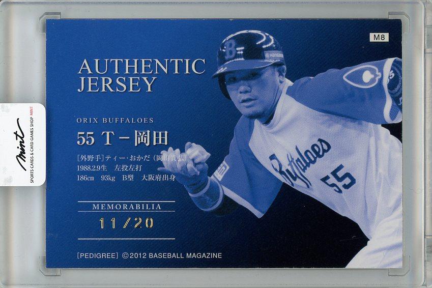 【裏面上側若干白欠けあり】2012 BBM オリックス・バファローズ 「PEDIGREE」 T-岡田 パッチカード【11/20】