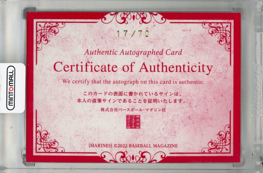 2022 BBM 千葉ロッテマリーンズ 中村奨吾 直筆サインカード【17/70】