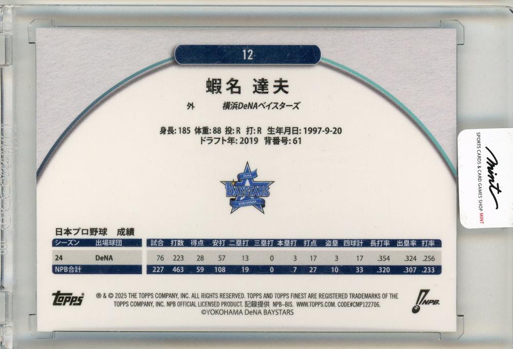 Topps 2025 NPB Finest 蝦名達夫 050/150