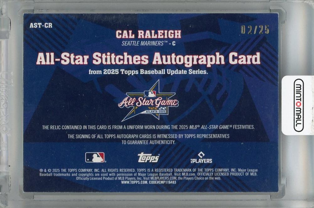 2025 Topps Update Series Cal Raleigh All-Star Stitches Autographs #AST-CR ※角折れ・白かけあり【02/25】 Seattle Mariners