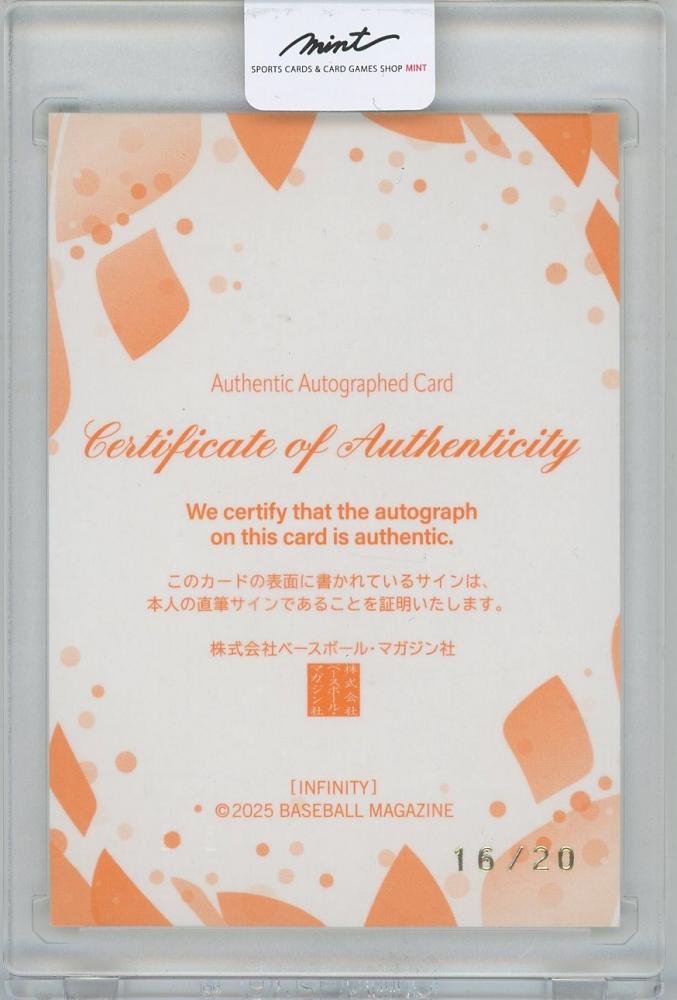 2025 BBM INFINITY / 工藤環奈(ソフトボール) 縦版直筆サインカード 【16/20】