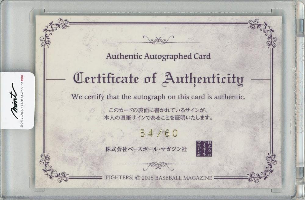 2016 BBM 北海道日本ハムファイターズ クリス・マーティン 直筆サインカード 60枚限定【54/60】