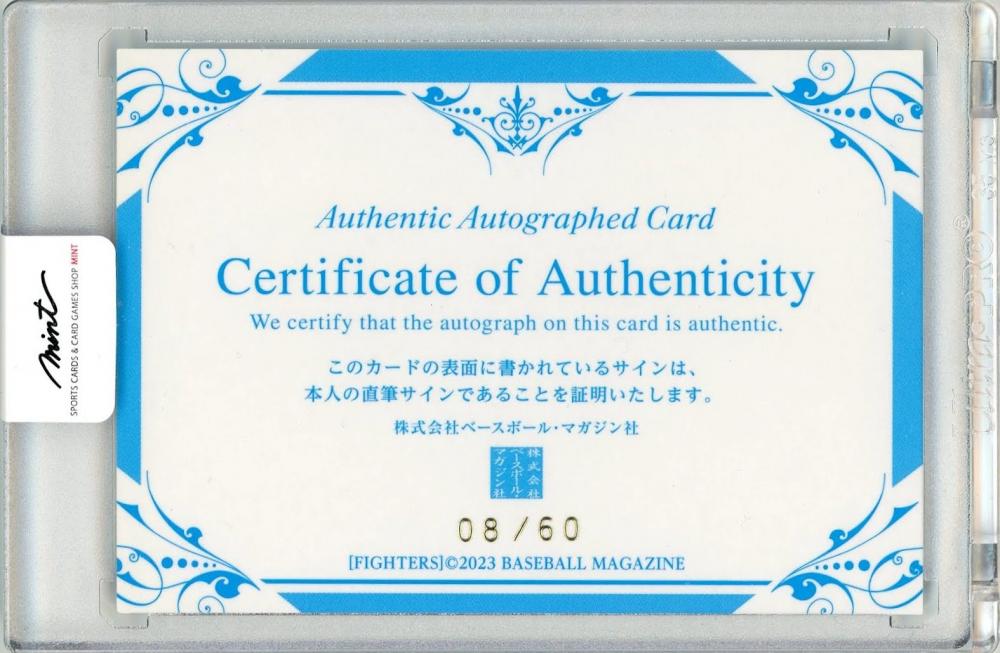 2023 BBM 北海道日本ハムファイターズ 江越大賀 直筆サインカード 60枚限定【08/60】