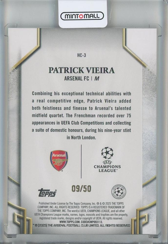 2024-25 Topps UEFA Club Competitions Patrick Vieira Historic Captains Gold Foilboard #HC3【09/50】 Arsenal FC