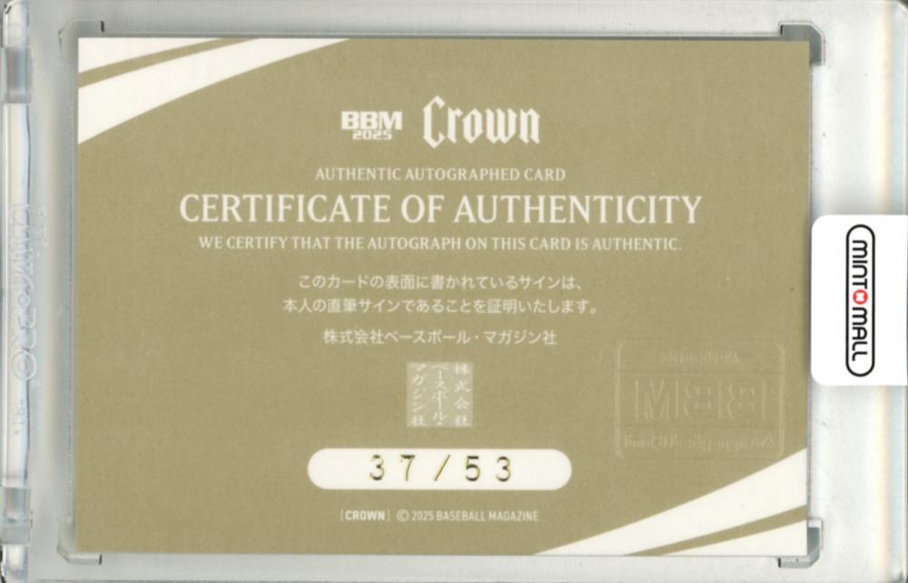 2025 BBM CROWN 山口茜 直筆サインカード 横版 【37/53】 バドミントン